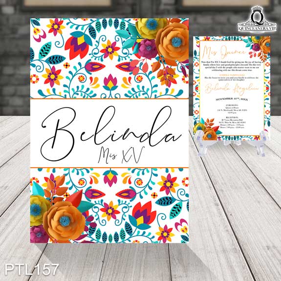Invitaciones de Quinceañera de Flores Colores Mexicanos PTL134 - PTL134