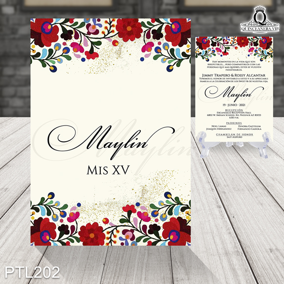 Invitaciones de Quinceañera de Flores estilo mexicano PTL202 - PTL202