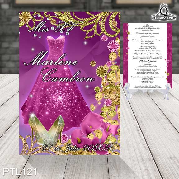 Invitaciones de Quinceañera de Realeza vestido PTL121 - PTL121