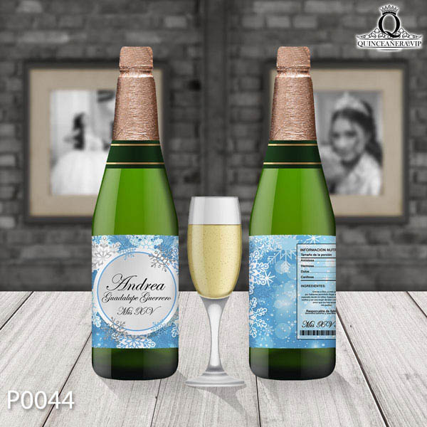El frío invierno tiene su encanto y es amado por muchos. Muchas fiestas se celebran con este tema que trae diseños con mucho azul, nieve y copos de nieve cayendo. Llena tu etiqueta de 15 años para botellas con muchos copos de nieve y algunos brillantes, les dará un toque sutil de encanto a tu botella.